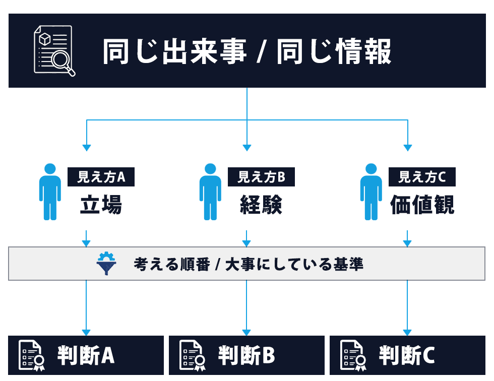 でも実は、迷いの原因は話し方や能力の前にあります。人はそれぞれ、「何を大事だと感じるか」「どこから考え始めるか」が違います。